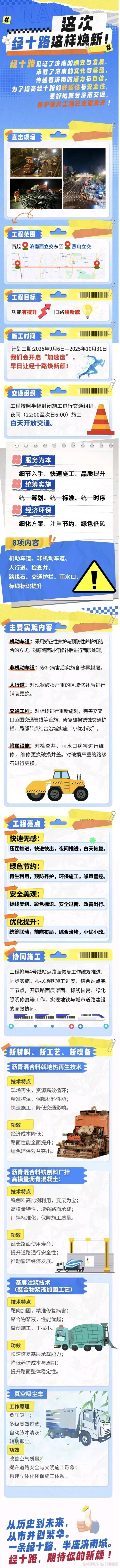 近日,济南启动经十路整体养护提升工程,工程西起医学大道,东至燕山立交,横跨槐荫区、市中区、历下区,全长约18公里,对部分路段(约12.4公里)进行养护提升,主要实施机动车道、非机动车道、人行道整治提升,同步更新维护检查井、雨水口、交通护栏等附属设施。