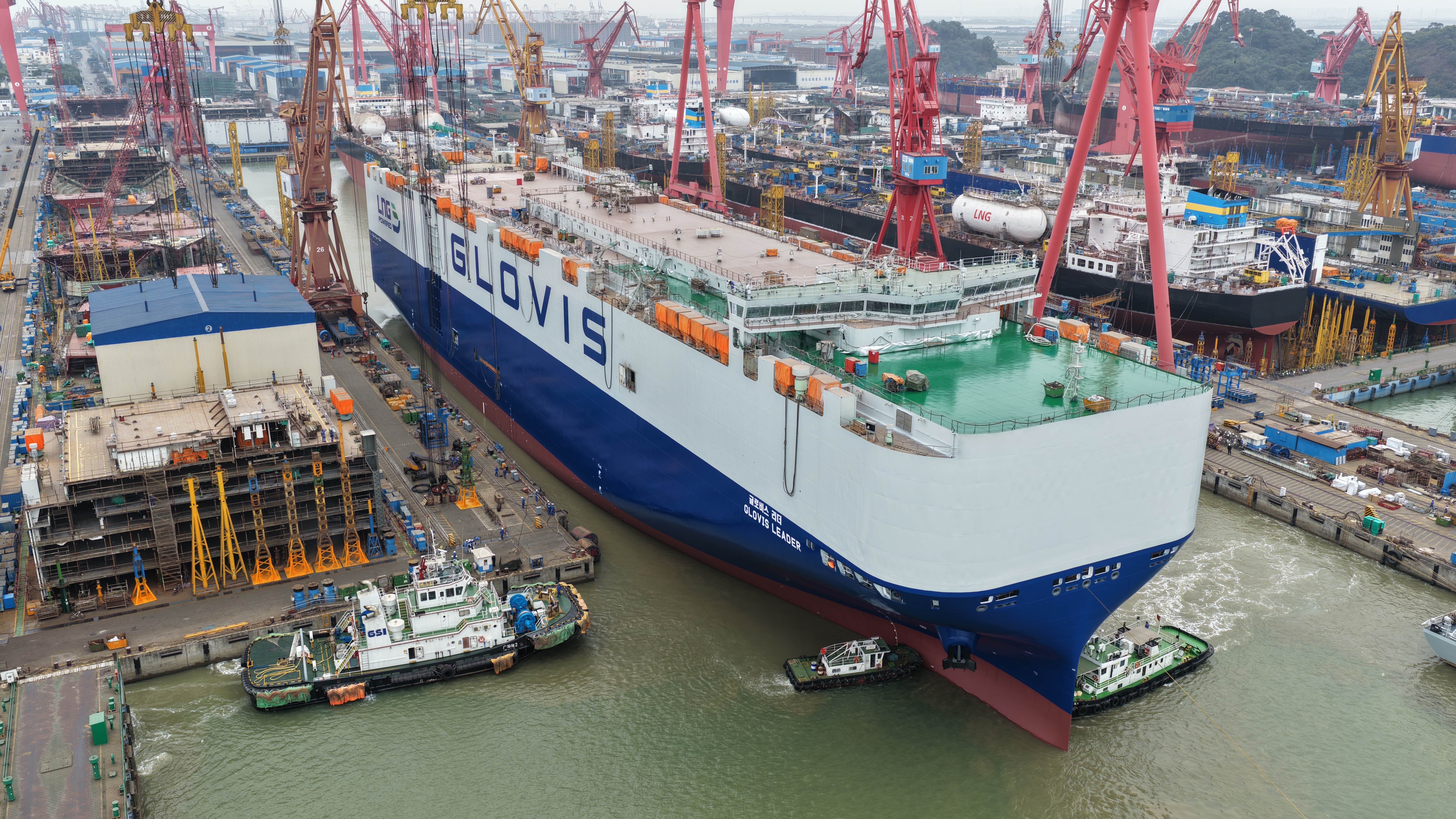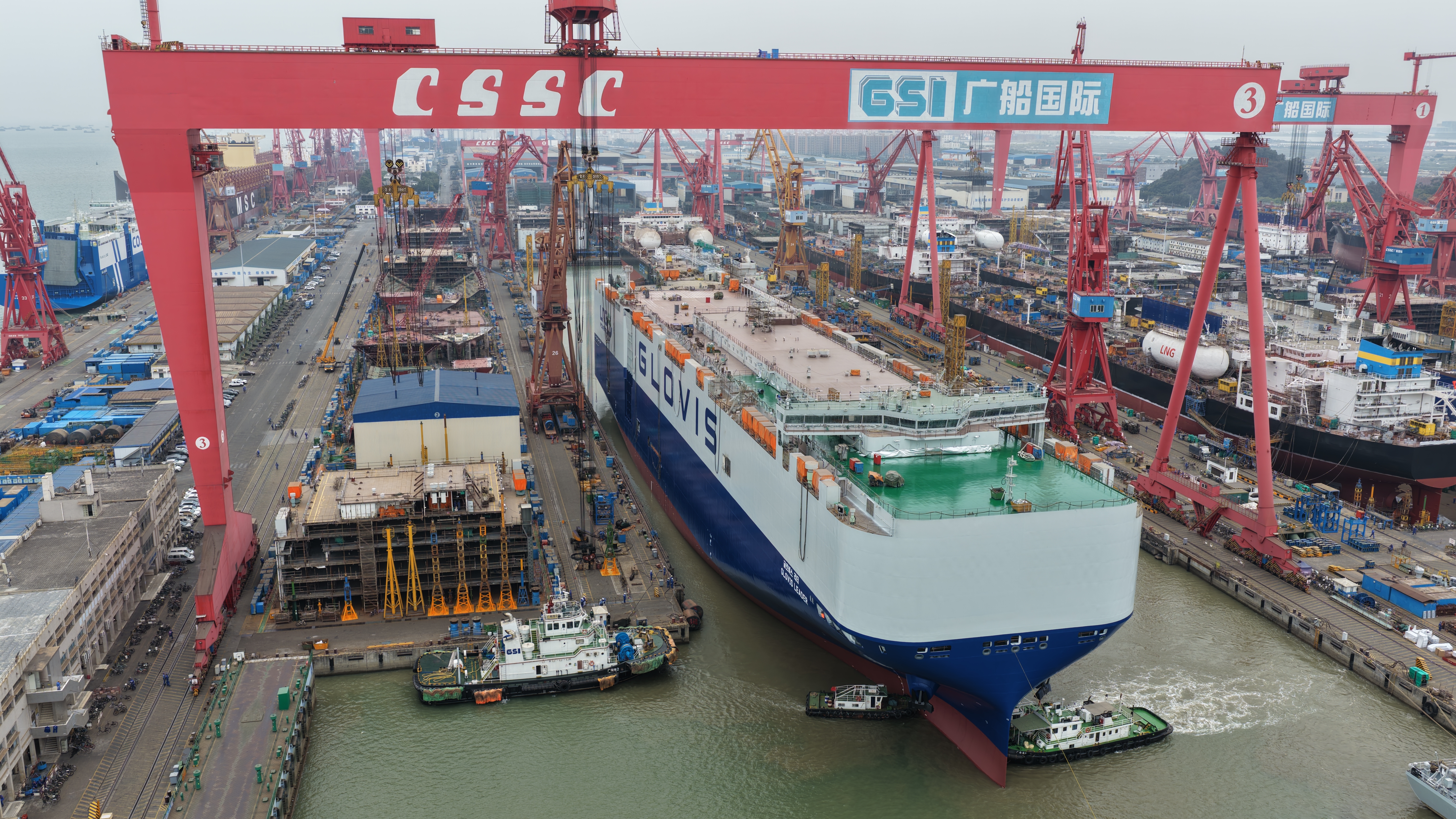 新年伊始,气象万千。1月21日,中船广船国际为韩国HMM公司建造的10800车LNG双燃料汽车运输船(PCTC)1号船在广州南沙出坞。